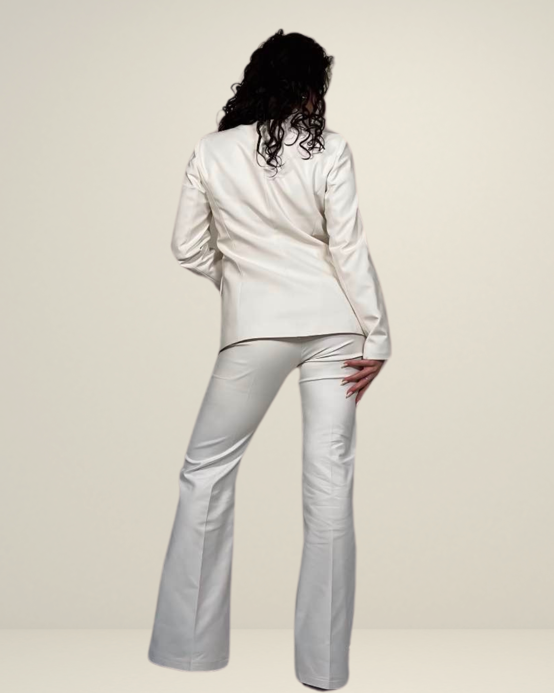 Descrizione: Tailleur panna, Eleganza Strutturata. Raffinato, deciso e dal taglio impeccabile, questo tailleur color panna è l’emblema dell’eleganza contemporanea.