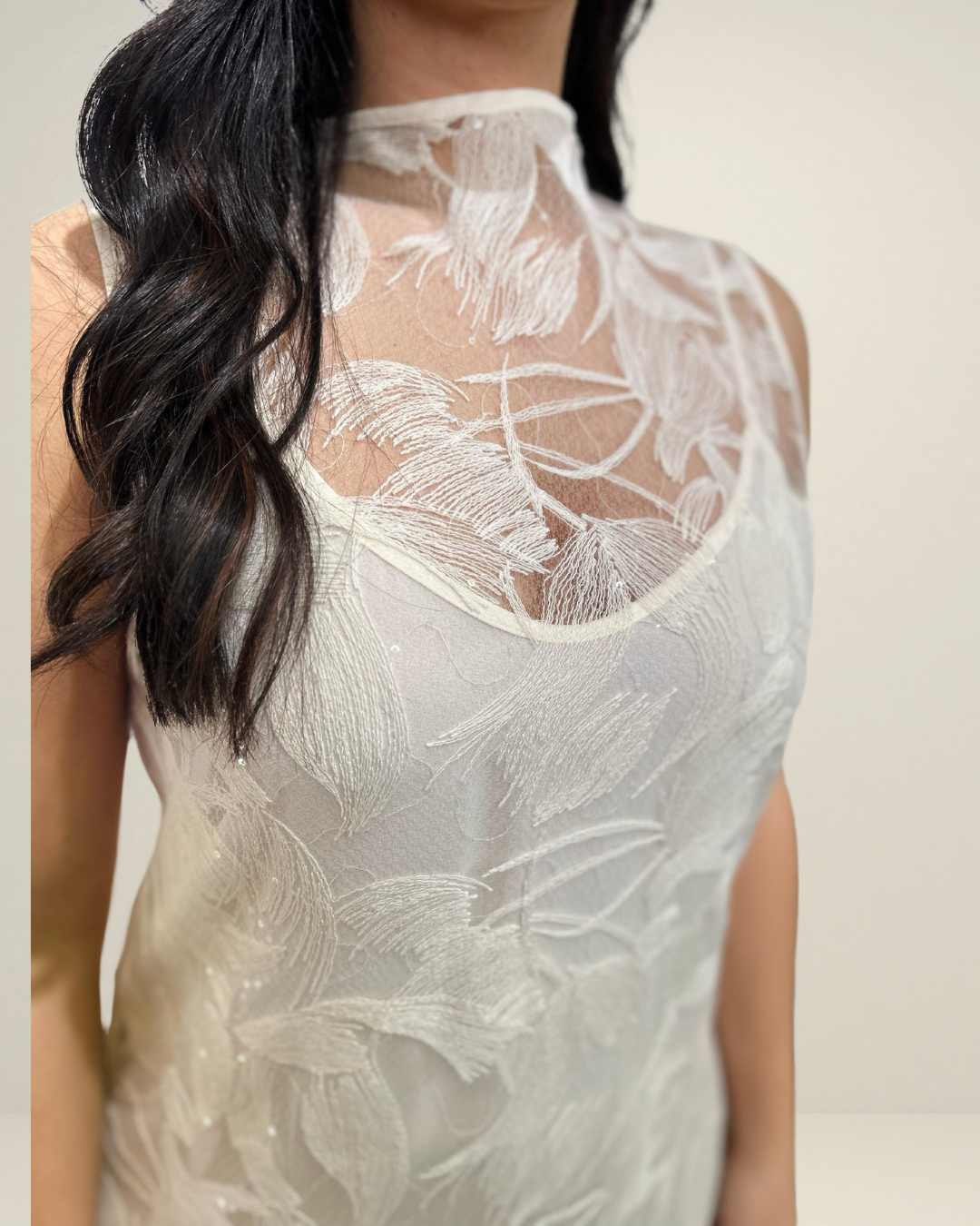 DESCRIZIONE: Questo abito elegante e raffinato è caratterizzato da una delicata lavorazione in pizzo con motivi floreali, che dona un effetto romantico e sofisticato. Il design presenta un collo alto, che aggiunge un tocco di classe al look, mentre la lunghezza midi si adatta perfettamente a diverse occasioni, da eventi serali a cerimonie speciali. Il tessuto leggero e trasparente offre effetto, mentre la vestibilità scivolata garantisce comfort senza rinunciare alla femminilità. Perfetto da abbinare alla nostra sottoveste, è ideale per chi cerca un look elegante e sofisticato. La modella indossa una taglia 44.