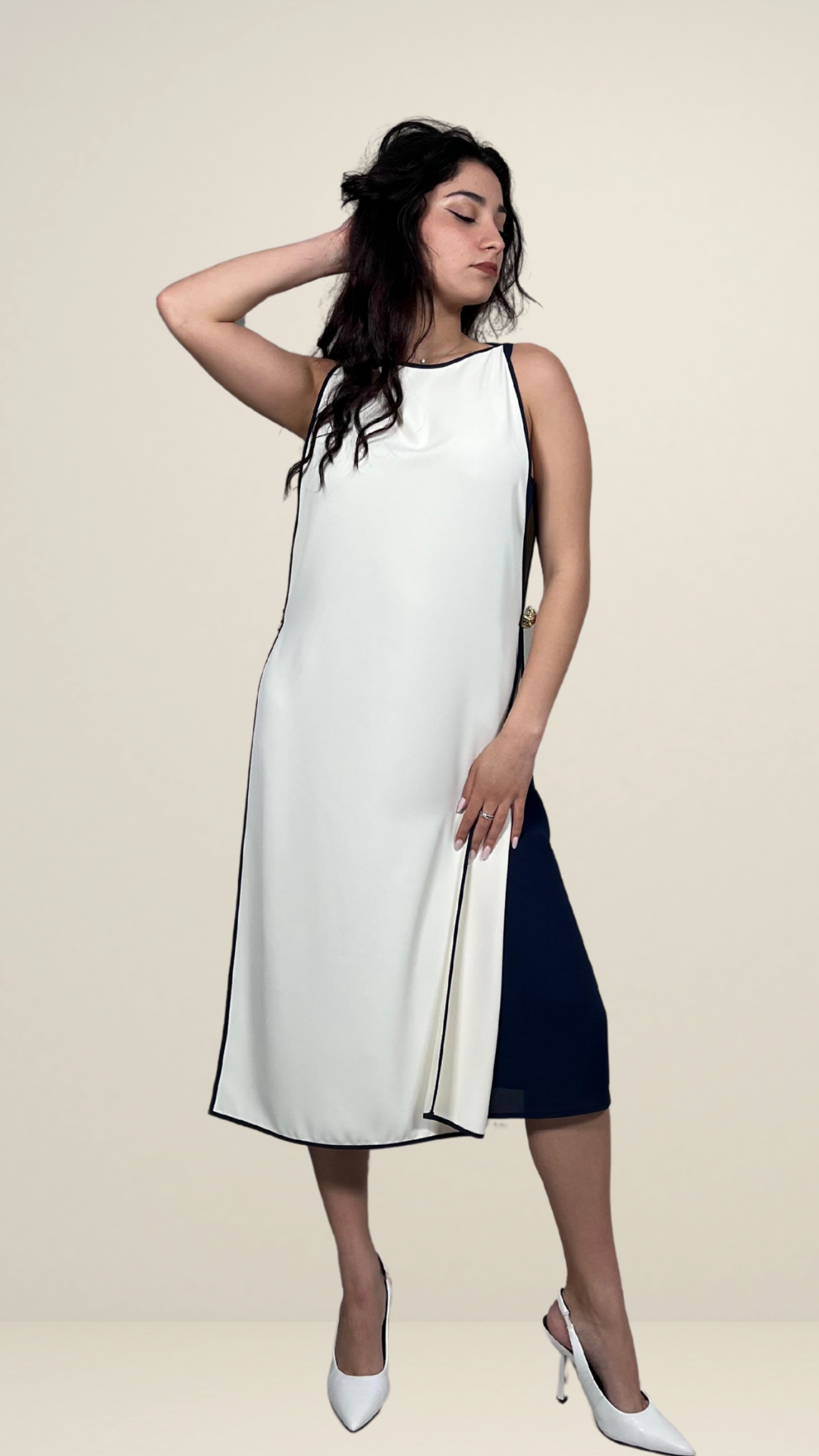 Abito Cady Fluid Bicolor Panna Blu