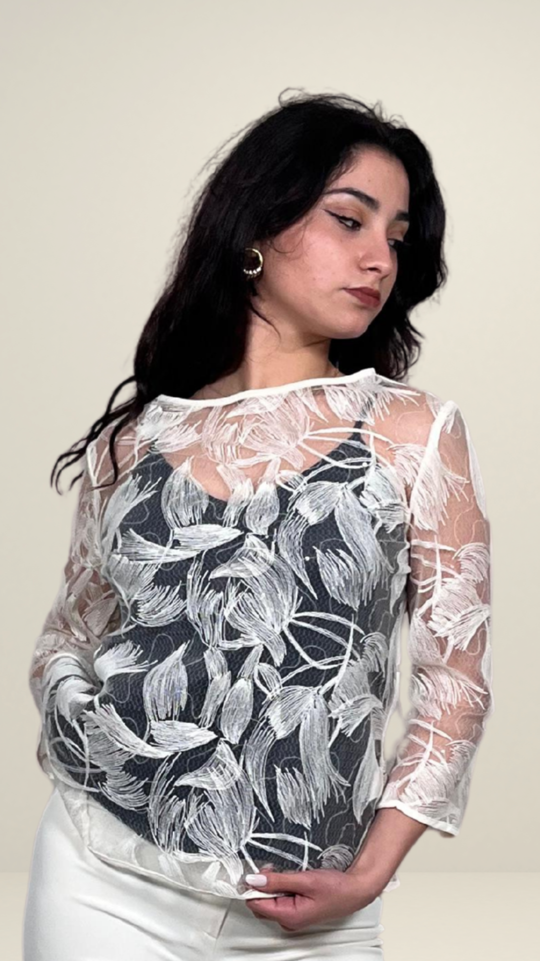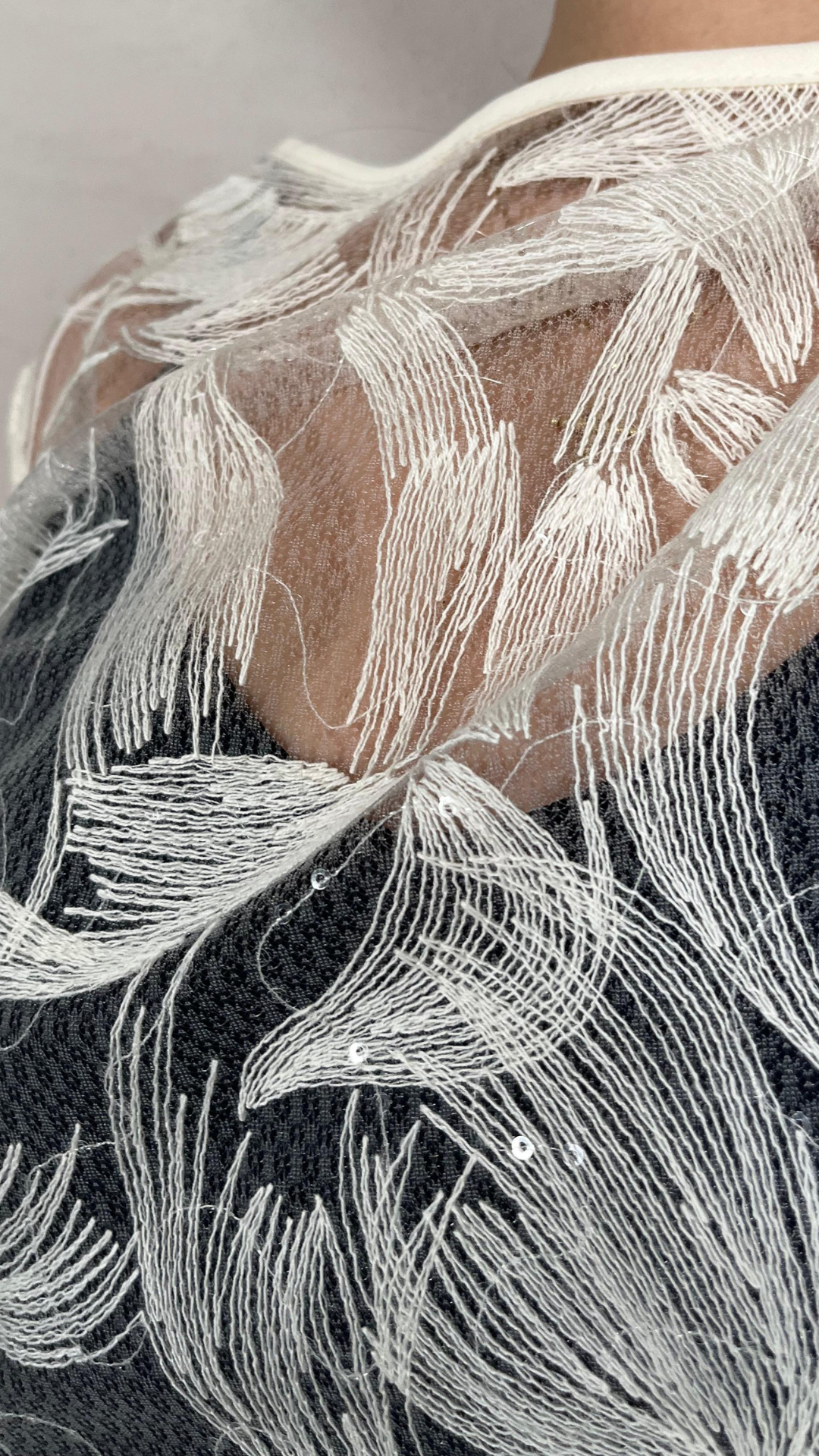 Maglia Tulle Ricamo Panna