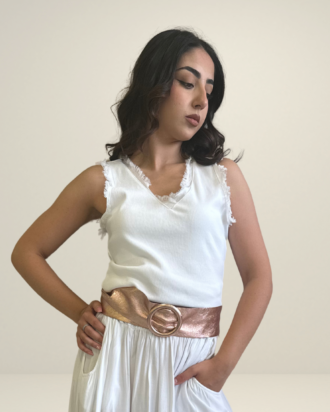 Canotta bianca con bordi sfrangiati