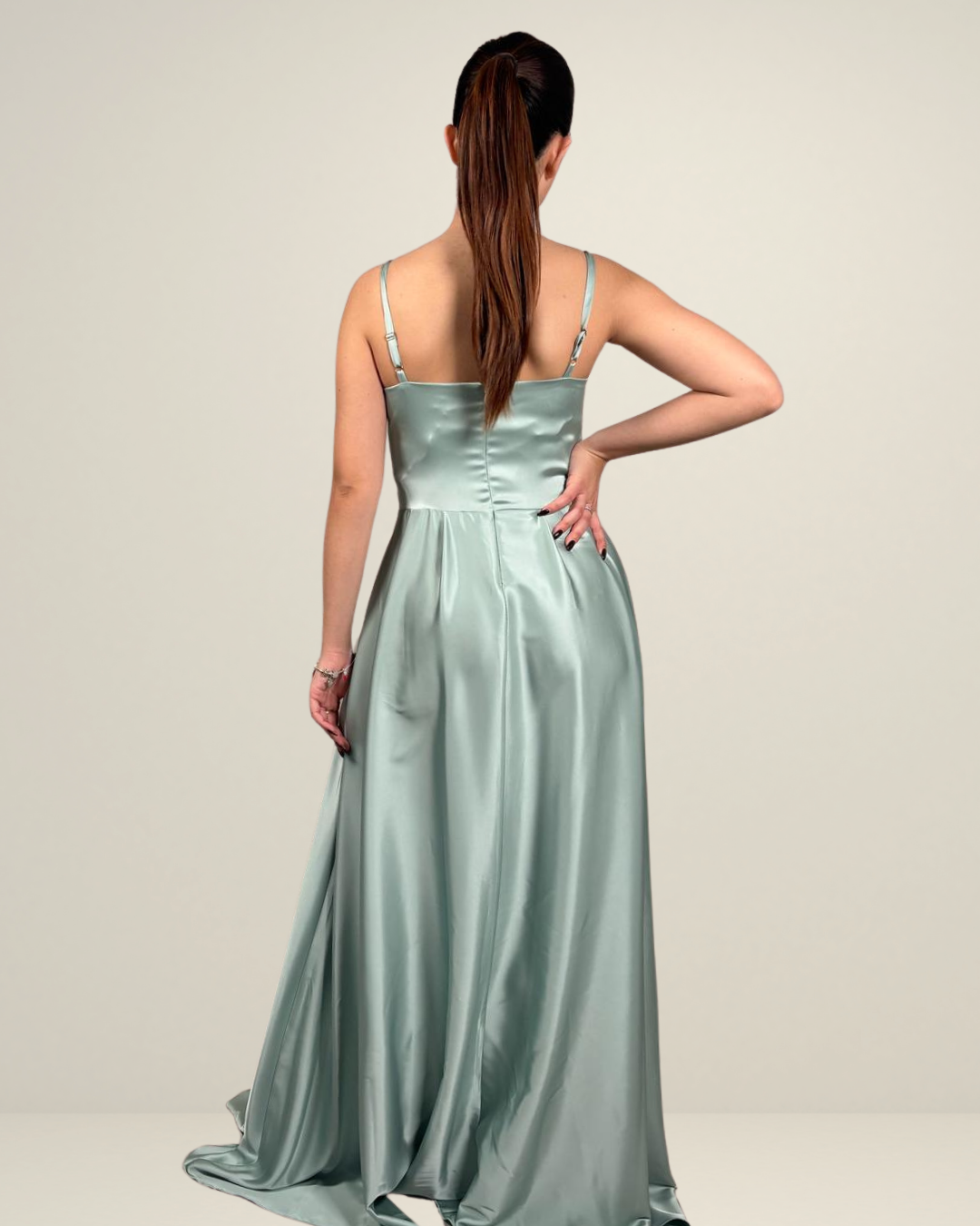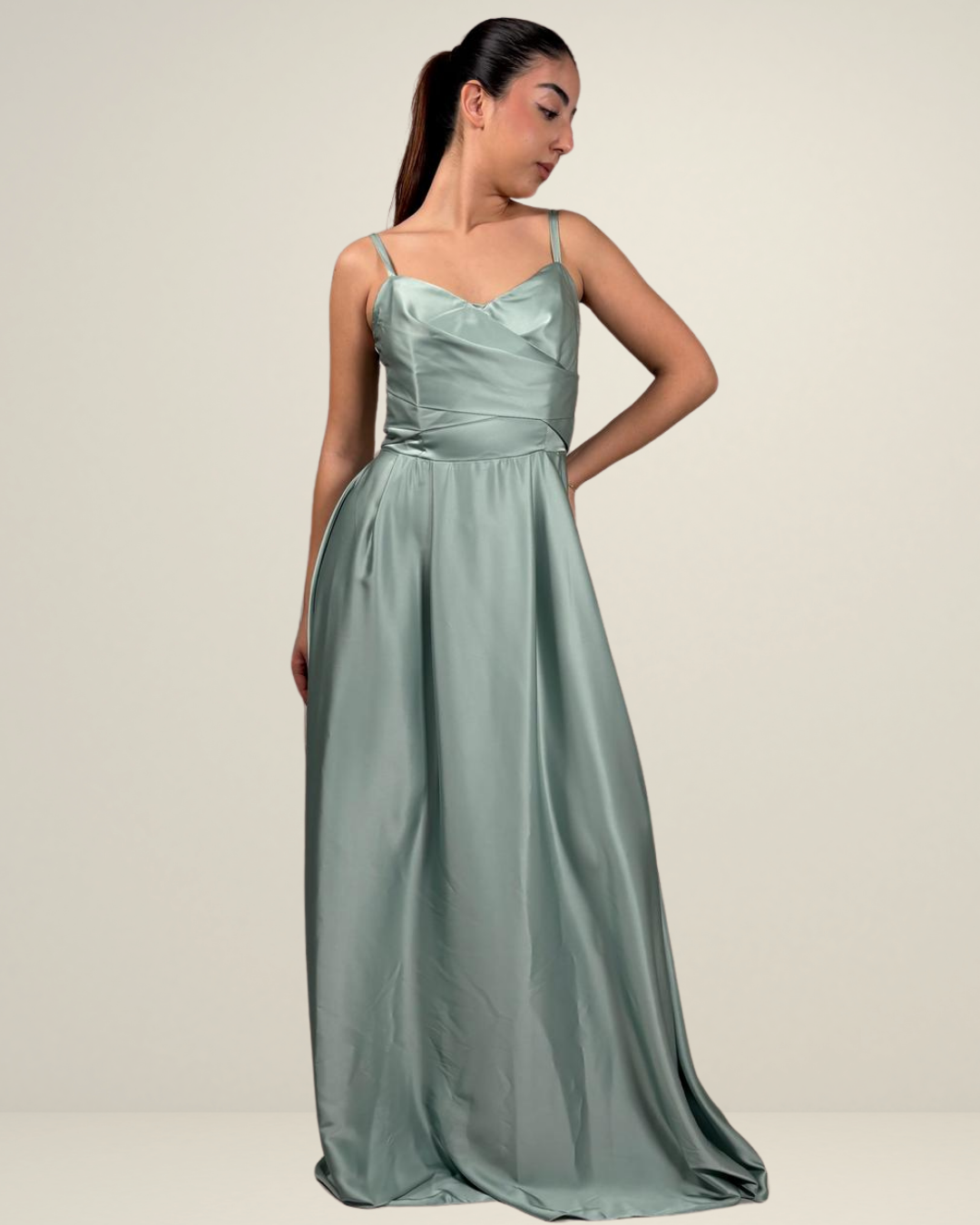 DESCRIZIONE: L'Abito in raso è pensato per esaltare la femminilità delle damigelle d'onore e offrire eleganza in eventi speciali. Lungo e con colori modulabili, è perfetto per cerimonie e ricorrenze, con un corpino drappeggiato, spalline sottili e chiusura con zip posteriore che rivelano una silhouette raffinata. Realizzato in Italia. Un abito che unisce fascino, femminilità e grazia, ideale per occasioni eleganti. La modella indossa una taglia S.
